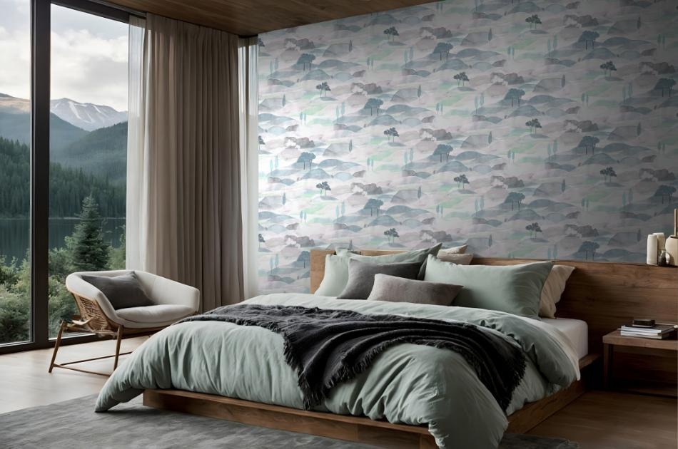 Vind jouw kleur voor Behang met getekend landschap