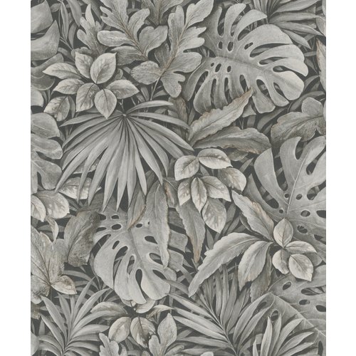Het Botanica Behang met Grote Bladeren – 33305 heeft een donkerdere, mysterieuze uitstraling met grote bladeren in diepe groene en grijze tinten. Dit behang straalt kracht en elegantie uit en is ideaal voor wie een statement wil maken in zijn interieur.