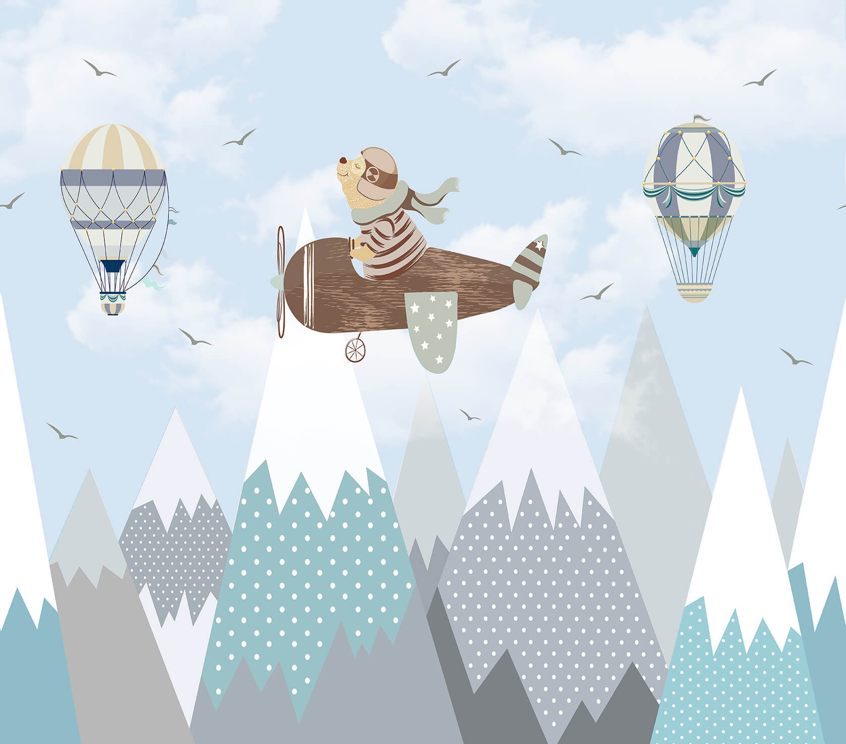 Vind jouw kleur voor Cute Walls- Air Travel Bear 318x280cm - CW6001-1