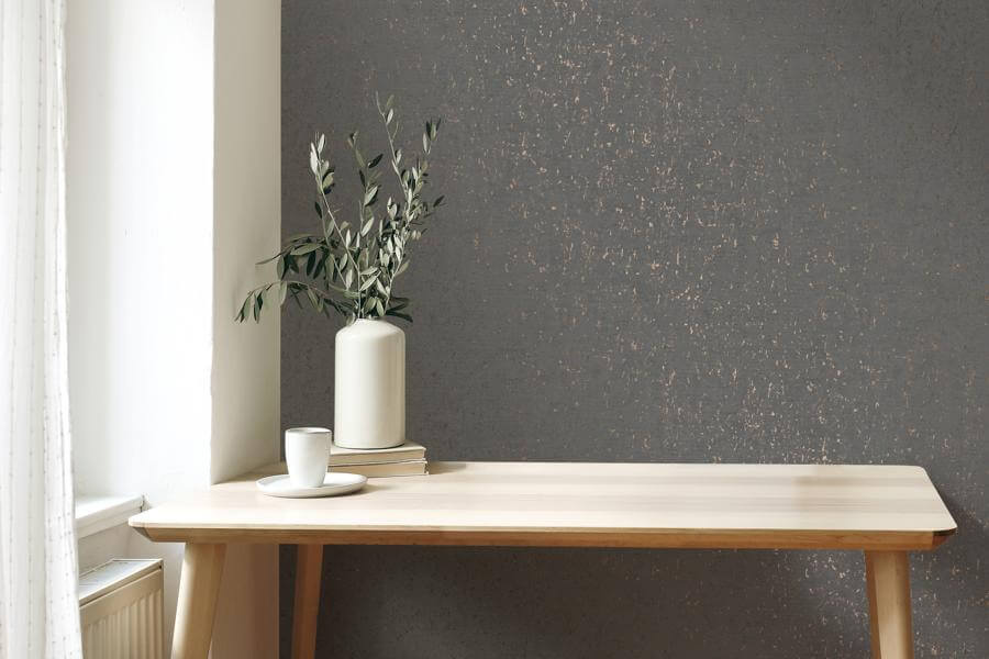 Callie is een realistische uni kurkimitatie behang met op de achtergrond een subtiel metallic effect.