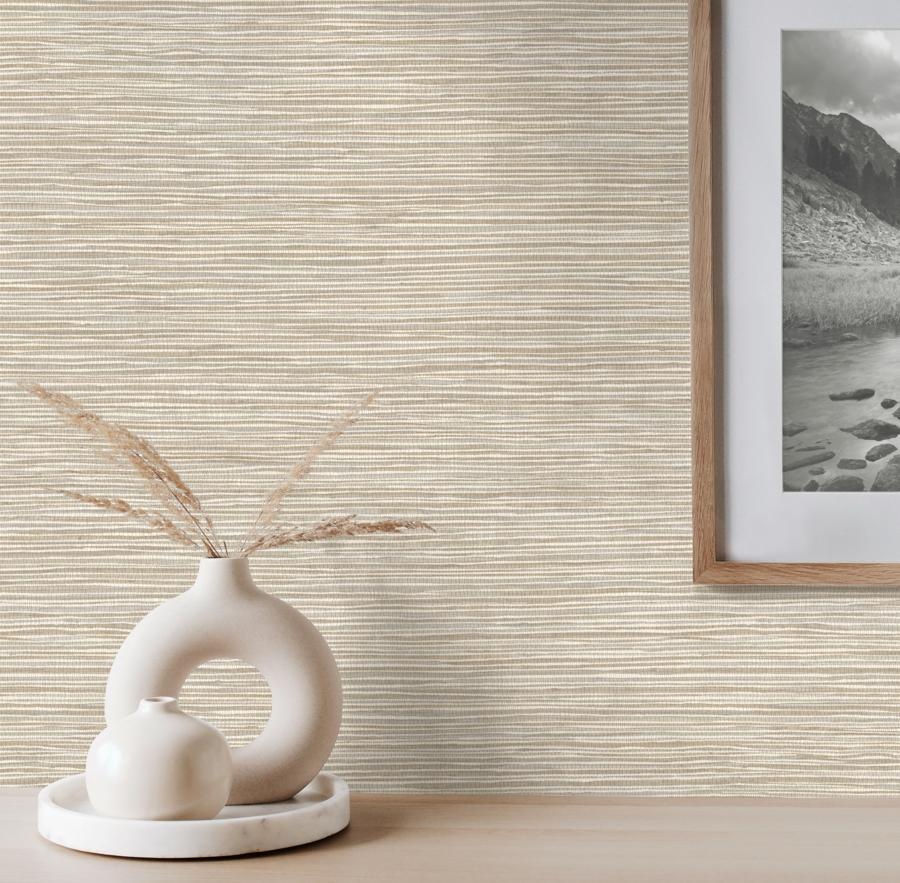 Het dessin Alton is een realistische imitatie van een grasweefsel motief, met zijn typerende horizontale structuur opgebouwd uit grasstengels. Verkrijgbaar in 10 neutrale tinten.