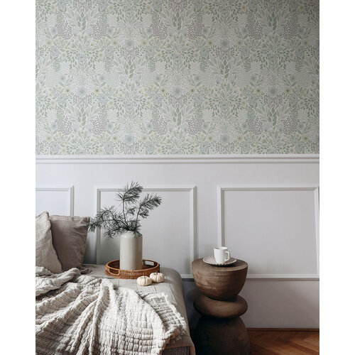 Het Äng-behang (wat 'weide' betekent) heeft een prachtig kleurenschema met uitbundige bloemen en bladeren die zich zachtjes vertakken.Het behang heeft een mooie diepte en straalt rust uit, terwijl de lieve bloemen je opvrolijken.