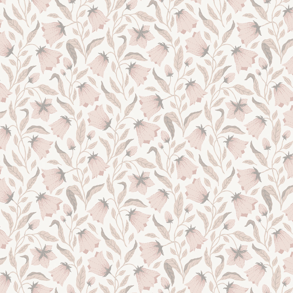 Stap een wereld vol blauwe klokjes binnen.Het behang "Blåklocka" (blauwe klokjes) heeft een elegant patroon dat zich subtiel langs de muur omhoog slingert en een harmonieuze sfeer creëert.