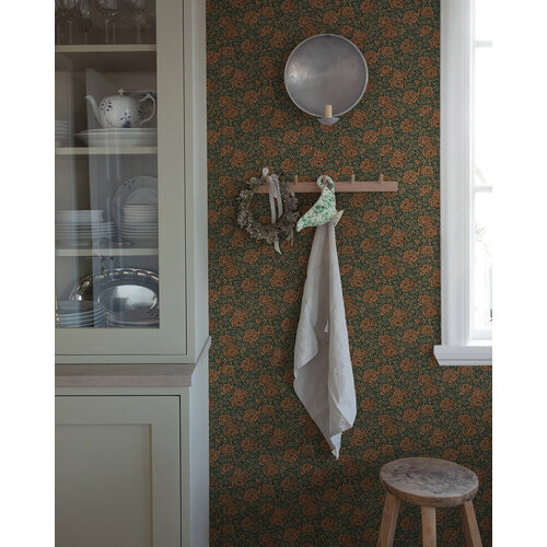 Bent u op zoek naar een prachtig, ouderwets behang?Het Rosengång-patroon stamt uit de jaren 1910 en 1920 en geeft de kamer een eigentijdse uitstraling.Het patroon van dichte, kleine rozen en bladeren zorgt voor een gezellige en huiselijke sfeer. Een mooie blauwe achtergrond wordt gecombineerd met tinten mole en goudbruin, die samen een warme en uitnodigende sfeer creëren.