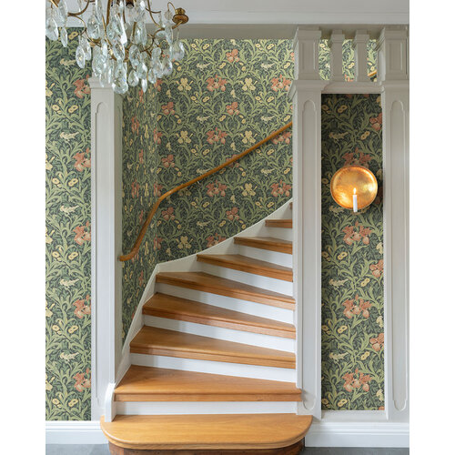 De liefde van William Morris voor de natuur is algemeen bekend.In Iris, een patroon ontworpen door Morris' protegé John Henry Dearle, vormen goudsbloemen en hun bladeren een speels geheel met kleine vogels tegen een rasterwerk van irissen. Dit creëert een charmant bladlandschap en geeft de muren van uw huis een tijdloos karakter.