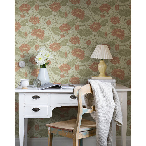 Een vliesbehang met handgetekende ontwerpen in Engelse stijl. Een stevig behang met een pure matte uitstraling.