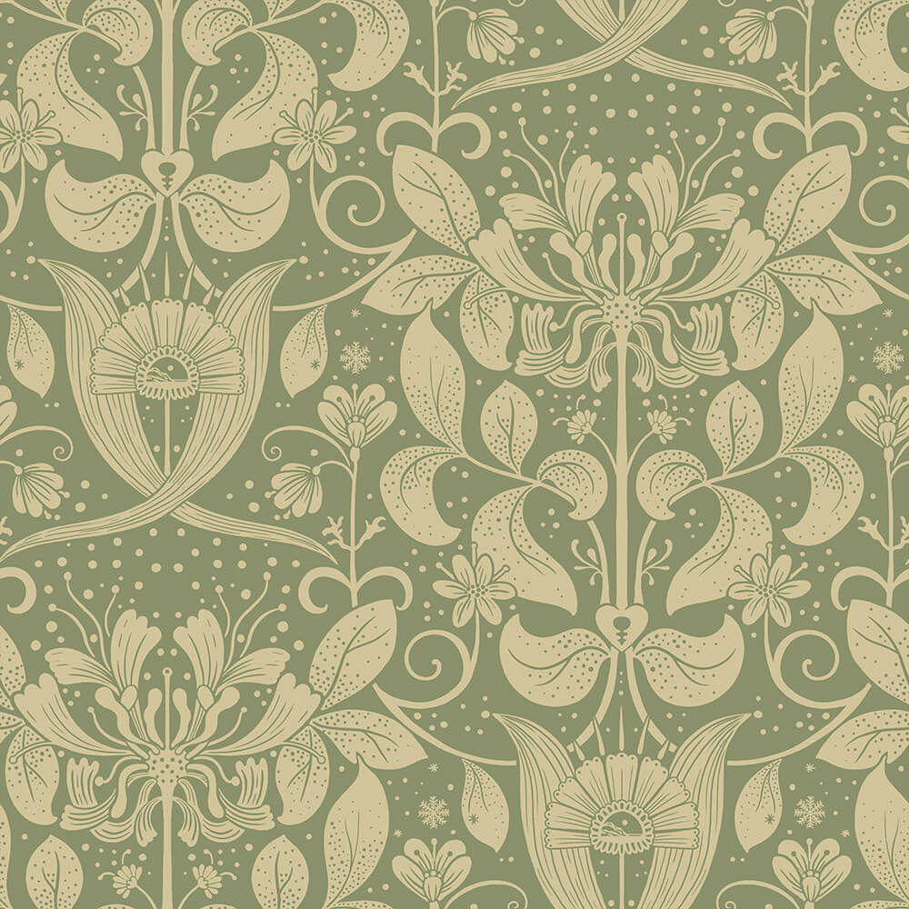 Stad en platteland, berg en dal – tegenstellingen en samensmelting.In Lina Schnaufers behangcollectie Hjärterum, van het Zweedse Midbec, maken we een patroonreis door Zweden, met de flora van het landschap als uitgangspunt.Hier leven de granieten kliffen en wilde kamperfoelie van Bohuslän samen met de bergen en de trotse muggen van Härjedalen.