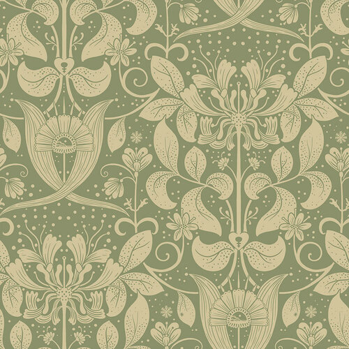 Bent u op zoek naar behang met een medaillonpatroon dat een charmante, ouderwetse uitstraling heeft? Dan is dit behang wellicht iets voor u.Het prachtige patroon Berit bestaat uit mooie lente anemonen en prachtige, in het wild groeiende kamperfoelie.