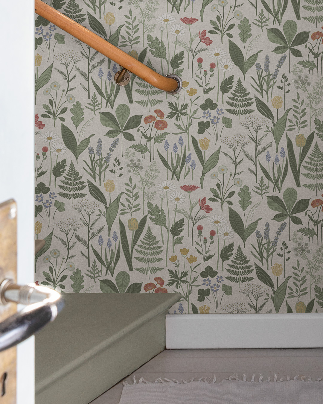 Geïnspireerd door zijn grootmoeder Elsa heeft ontwerper Björn Nilsson een prachtige bloemenweide op het behang gecreëerd. Een bloemenbehang met klaprozen, tulpen, boshyacinten, boterbloemen en parelhyacinten gecombineerd.Groene planten zoals varens, kastanjebladeren en eikenbladeren doemen ook nog op tussen de bloemen.