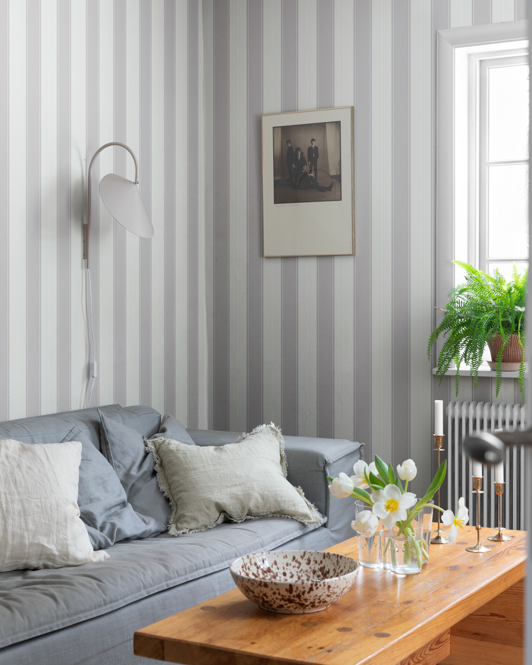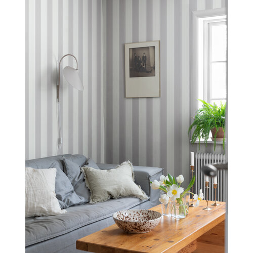 Gestreept behang is een bekend patroon dat je in veel huizen terugvindt en dat nooit uit de mode raakt.Het Fred-patroon is een verfijnde streep die zowel in een moderne als een landelijke woning past.Dit streepbehang met lichtere en donkere strepen geeft de kamer warmte en een stijlvolle uitstraling.