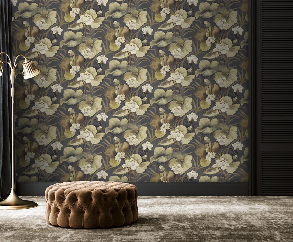 De Waterlily uit onze Designology behangcollectie kenmerkt zich door illustratieve en speelse bloemmotieven die verweven zijn met prachtig vormgegeven, extra grote waterleliebladeren.