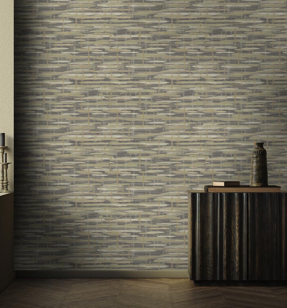 Het Derwent behang is opgebouwd uit schilderachtige penseelstreken die over elkaar heen zijn aangebracht. De rustgevende penseelstreken geven een beeld van kalm en vredig water.