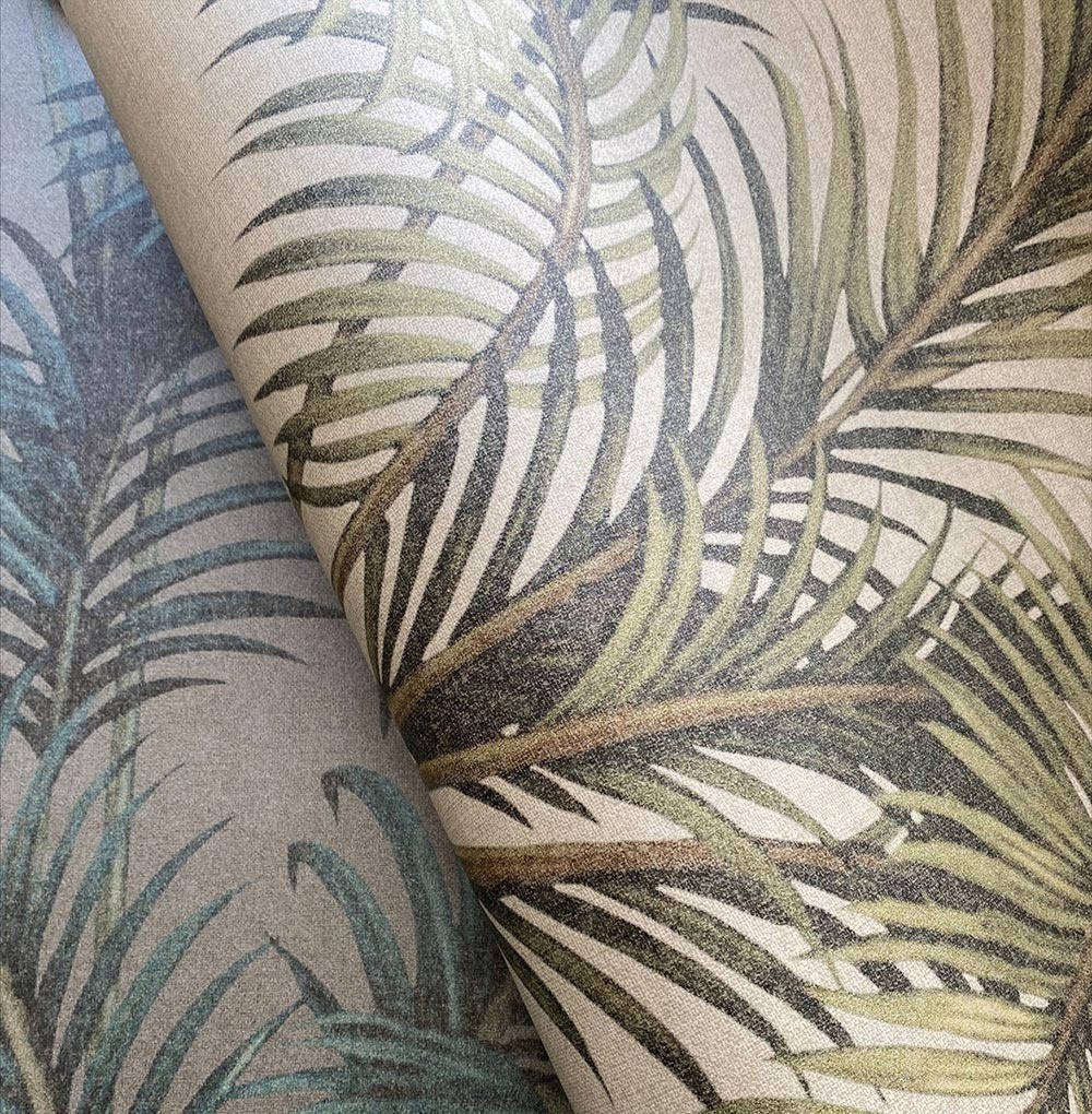 Palmaria is een betoverend behang dat de essentie van tropische elegantie in uw interieur brengt.De verfijnde details en levendige kleuren van de palmbladeren creëren een prachtig contrast en voegen diepte en textuur toe aan uw muren.Perfect voor het creëren van een serene maar toch verfijnde sfeer.