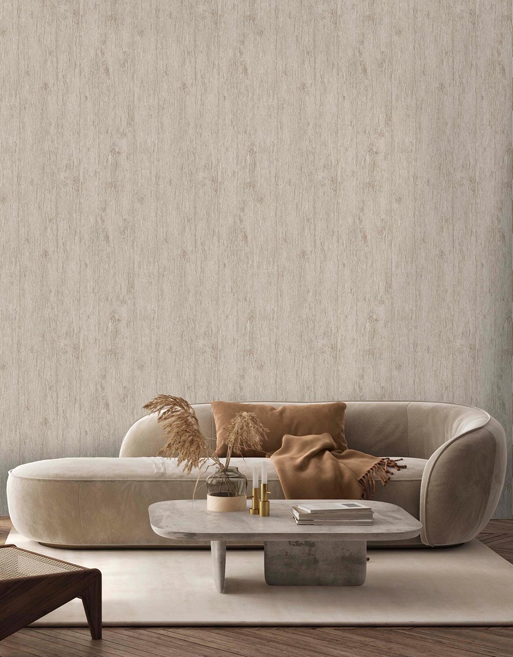 Tivoli weerspiegelt de serene schoonheid van natuurlijke houtnerven in subtiele, neutrale tinten. De delicate nuances bootsen op zachte wijze de organische patronen van boomschors na en brengen een gevoel van rust en warmte in uw leefruimte.