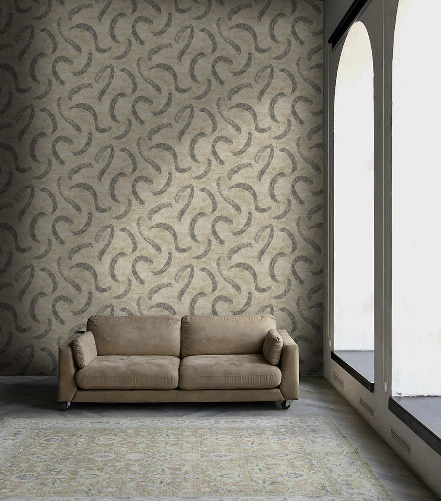 Dit Sirocco behang kenmerkt zich door artistieke, vloeiende penseelstreken, gecombineerd met een gestructureerd oppervlak, die de sterke winden weergeven die over de zandduinen van de Sahara waaien.