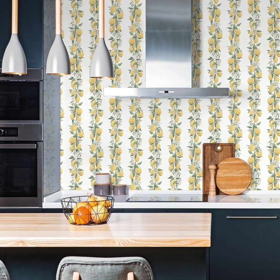 Vind jouw kleur voor Just Kitchens Behang met strengen citroenen - G45441