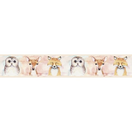 Vind jouw kleur voor Kids Walls Behangrand met bosdiertjes op watercolor roze achtergrond - 45890