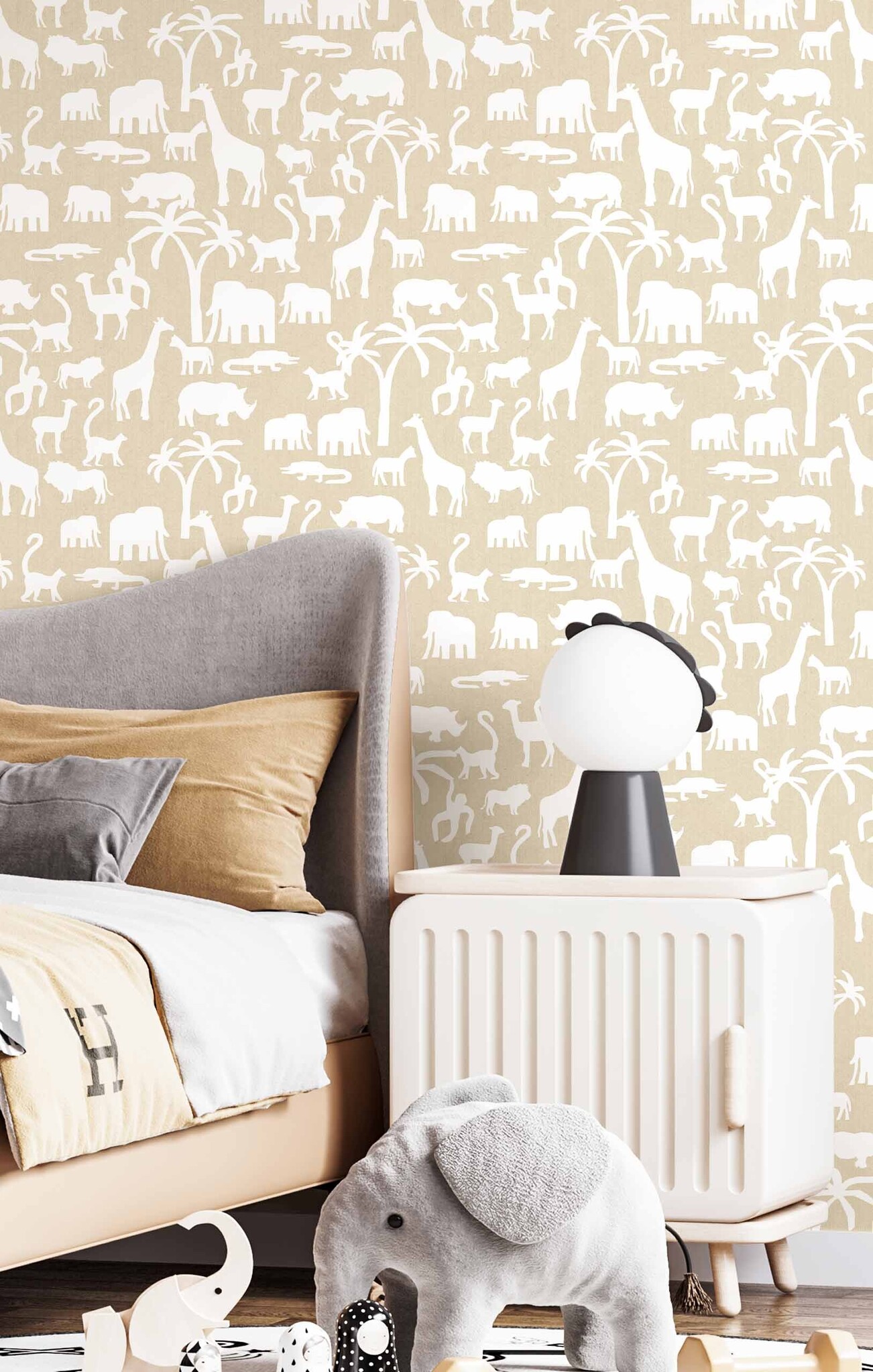 Vind jouw kleur voor MiniMe Behang met silhouetten van jungle dieren - 17133