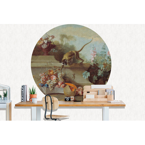 Vind jouw kleur voor Painted Memories 2 - 8070C - Circle Still Life with Monkey, Fruits, and Flowers