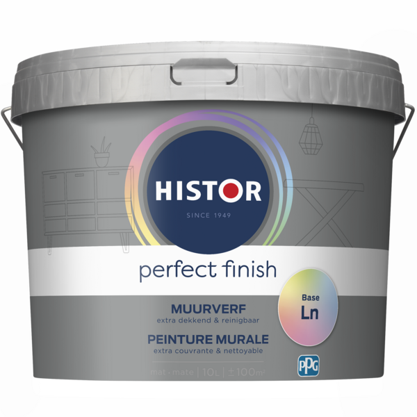 Wil je een andere kleur op je muur? Je kamer krijgt een geheel andere uitstraling door een frisse, lichte, warme of juist koelere kleur. Histor Perfect Finish is verkrijgbaar in 48 mooie kleuren matte muurverf. Zou je toch liever een andere kleur willen? De Verfzaak kan je Histor Perfect Finish Muurverf Mat in 1250 kleuren mengen, waardoor het de beste keuze is voor iedere smaak en elk interieur.