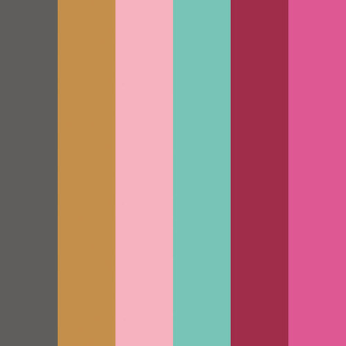 | Accentkleur | Roze, aqua, oker, grijs |