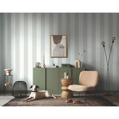 Bij dit streepbehang zijn de luchtige strepen ongeveer 13 cm breed. Kenmerkend voor dit behang is een licht glanzende sprankel in de achtergrond. Deze is niet opvallend aanwezig maar laat het behang onder invloed van licht net iets oplichten, waardoor het niet mat overkomt op de muur.