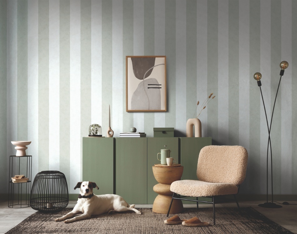De strepen – in blok-, pin- of aquarelstijl – en stucwerkelementen zijn perfect afgestemd op deze trend en zullen u zeker inspireren. Voor elk ontwerp wordt minstens één bijpassende effen kleur voorgesteld, zodat u uw wandontwerp perfect kunt afstemmen.