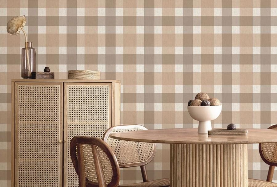 Dit meerkleurige ruitpatroon heeft een mix van verschillende ruitgroottes, waarvan de grootste 9 x 9 cm groot is en de kleinste 5,5 x 5,5 cm. De fijne structuur in het behang camoufleert kleine oneffenheden in de ondergrond.