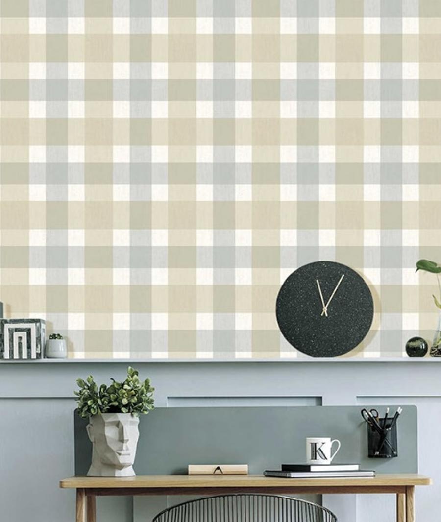 Dit meerkleurige ruitpatroon heeft een mix van verschillende ruitgroottes, waarvan de grootste 9 x 9 cm groot is en de kleinste 5,5 x 5,5 cm. De fijne structuur in het behang camoufleert kleine oneffenheden in de ondergrond.