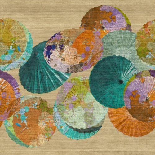 Fotobehang Janome heeft een dessin van gekleurde parasolletjes, op een matte getextureerde ondergrond.